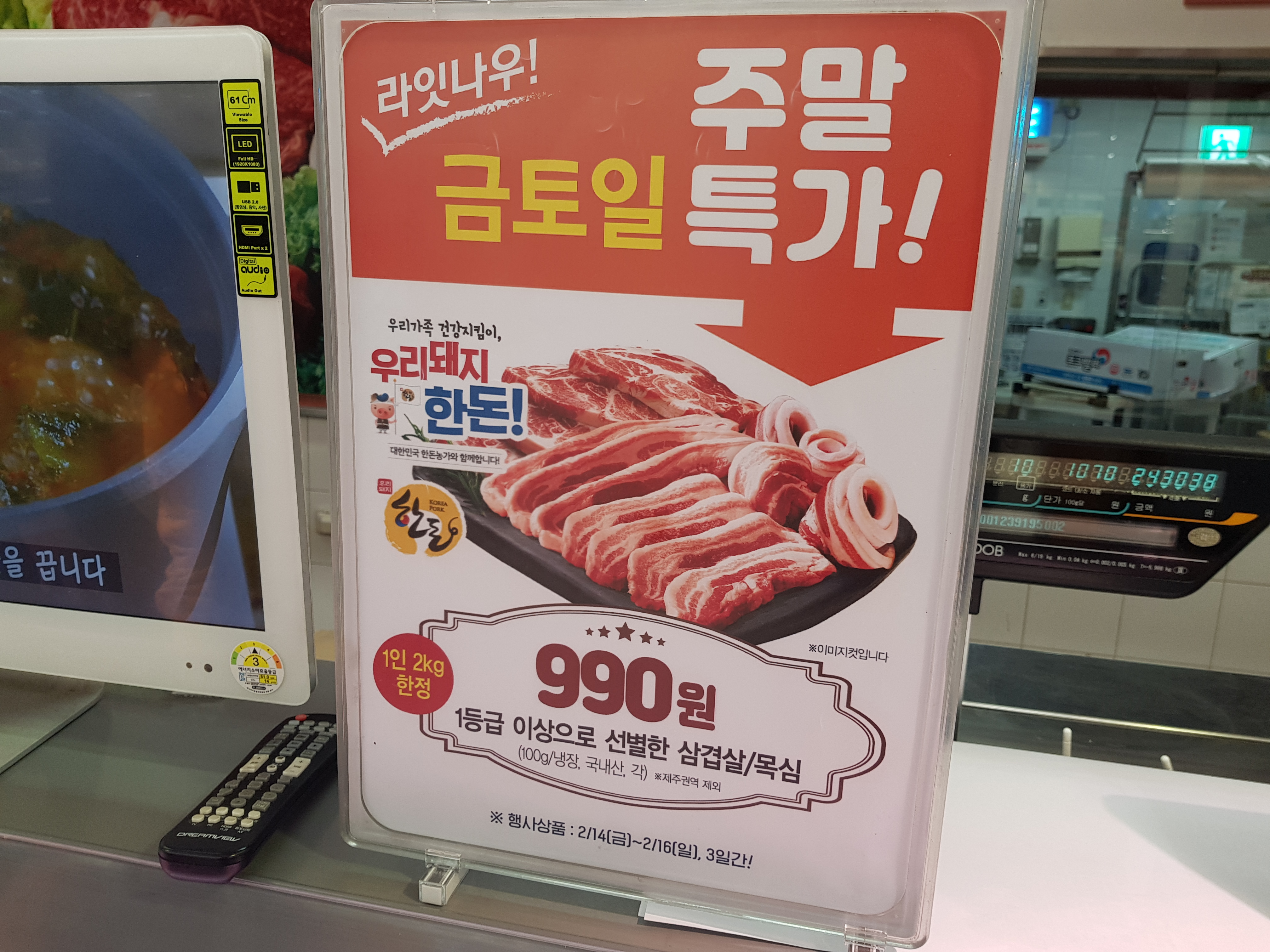국내산삼겹살구이 629g (990원/100g) 6,220원